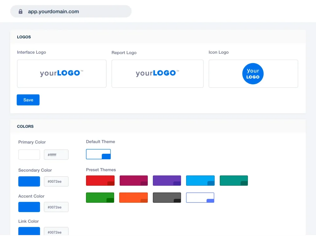 Upload your logo, choose your own color scheme, and even host it on your own domain. Our full suite of white labeling capabilities gives you everything you need to call the platform your own.